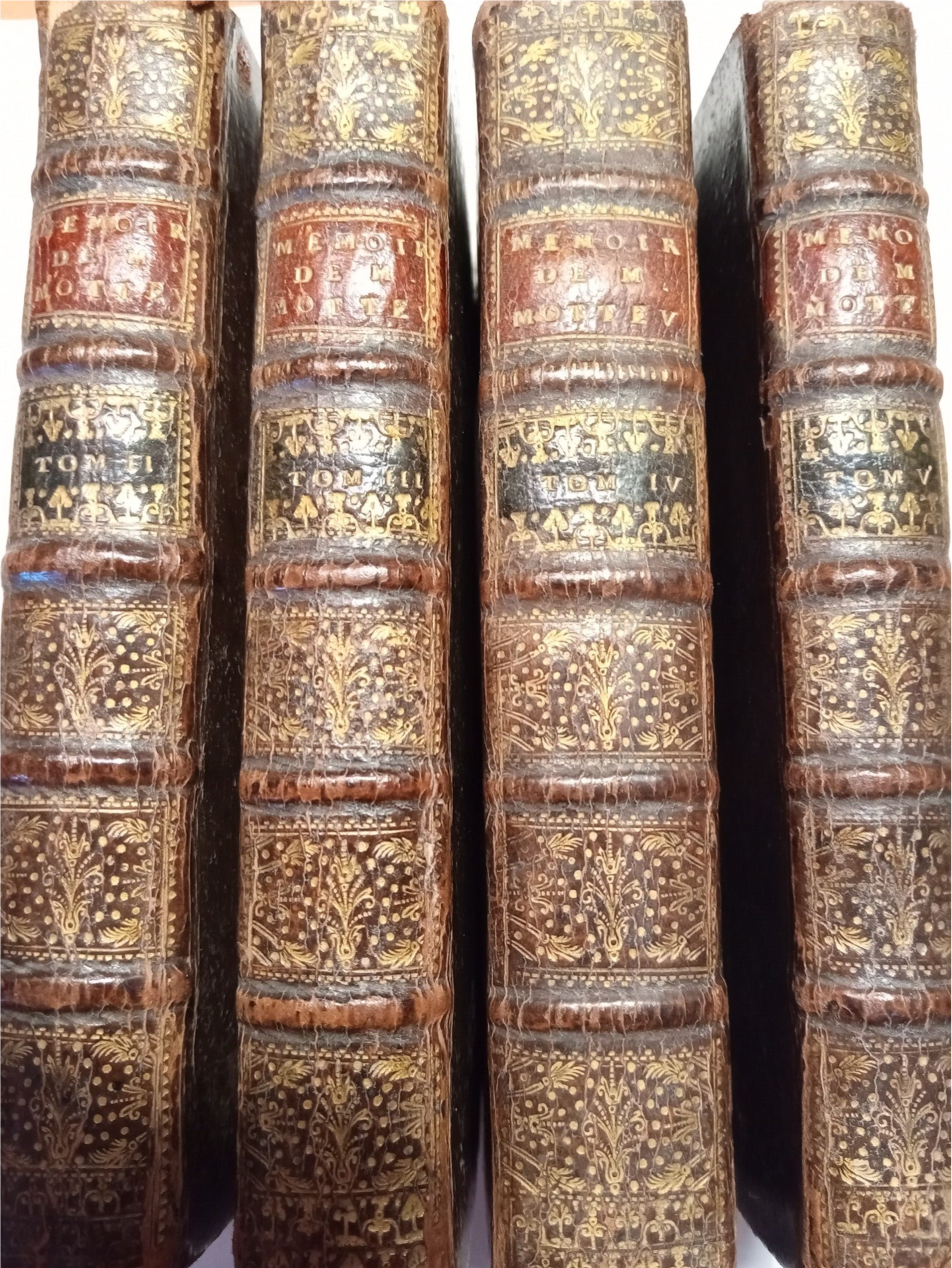 Plein-cuir, In 12,des frottements, extrémités des dos assez frottées, intérieur bon.