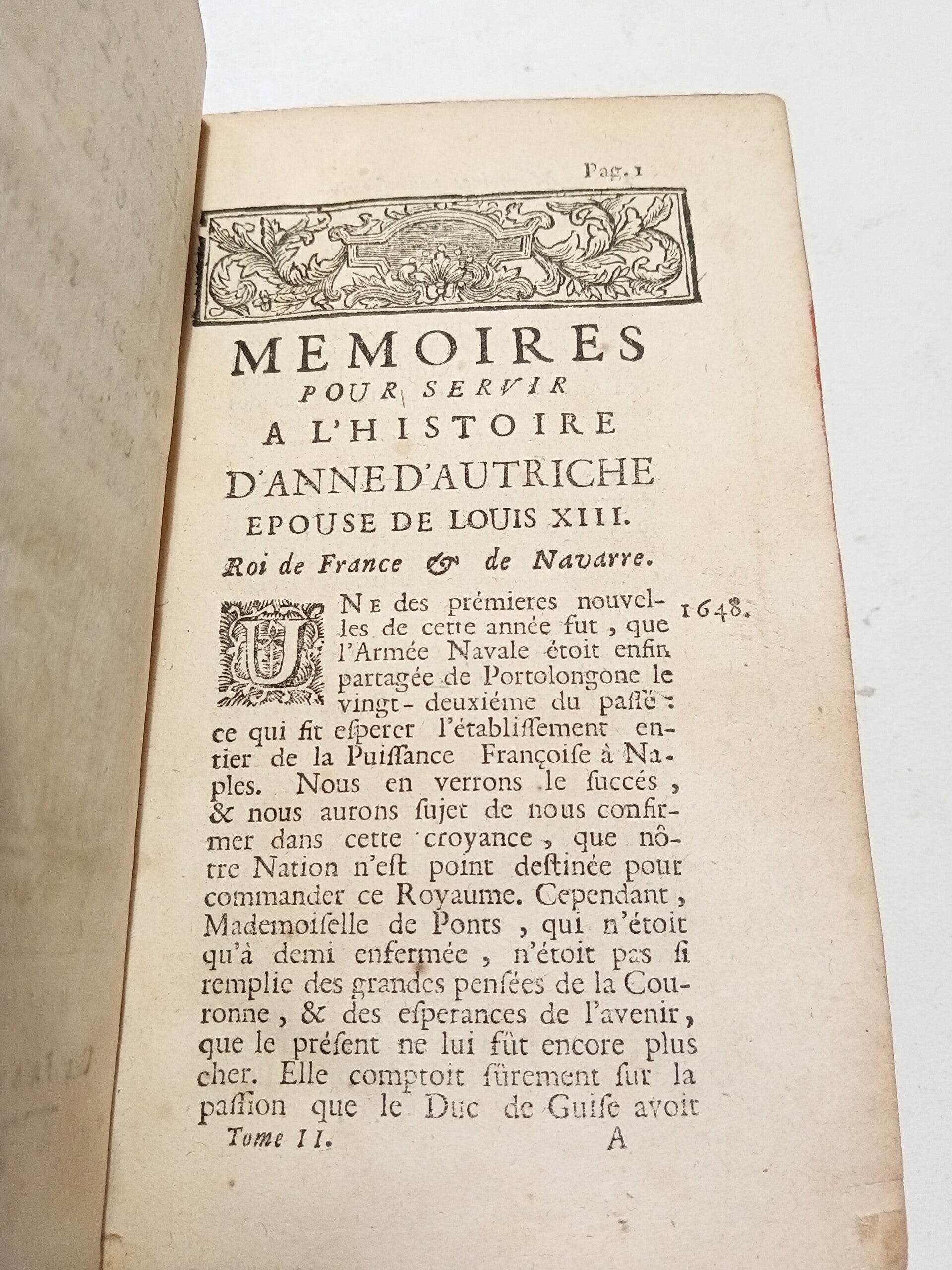 Memoires, pour servir a L'Histoire d'Anne d'Autriche, Epouse de Louis XIII, Roi de France et de Navarre en 5 tomes. Tome 1 manquant. Le tome 2 commence en 1648.