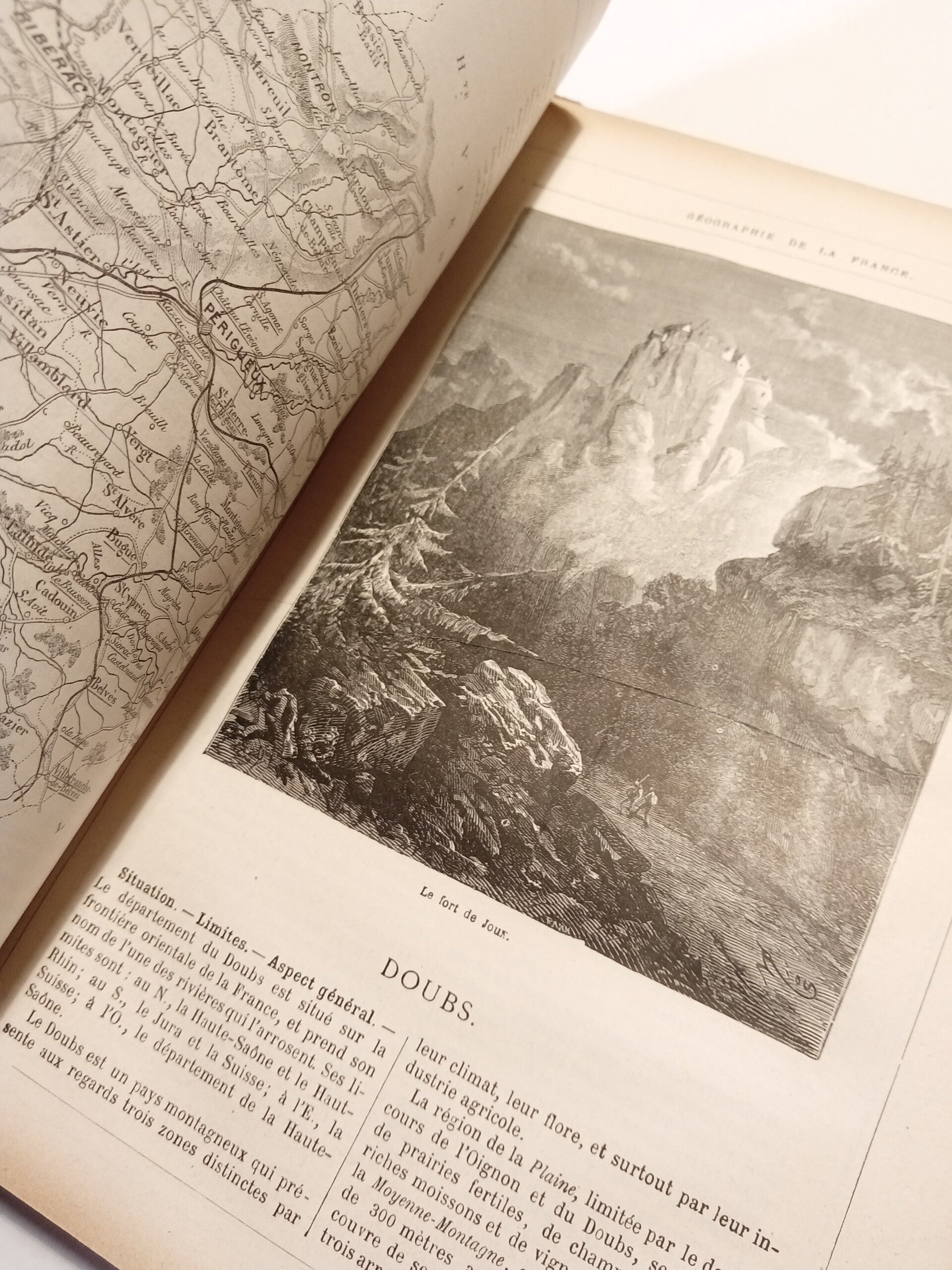 Précédé d'une étude sur la Géographie générale de la France par Théophile LAVALLEE Illustrations par CLERGET et RIOU Cartes par Constans, gravées par Sedille. Illustré d'une carte et d'une vue gravée sur bois par département.
