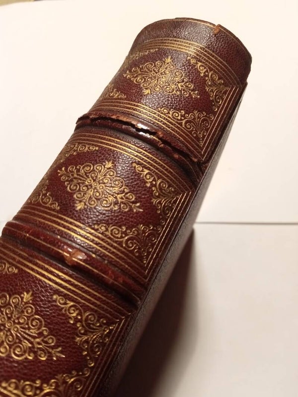 Demi-chagrin, In-quarto ,des frottements, bas du dos accidenté, intérieur bon, tranches dorées, 552 pages.