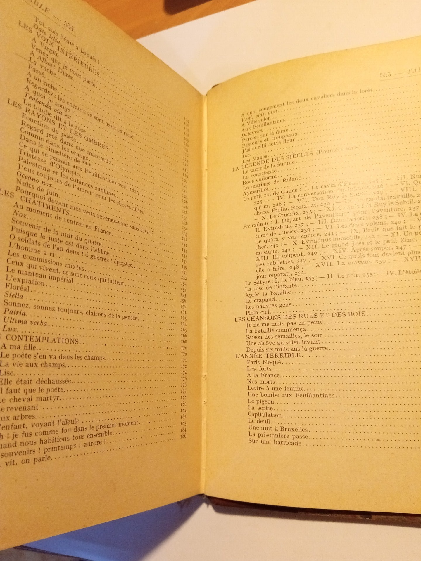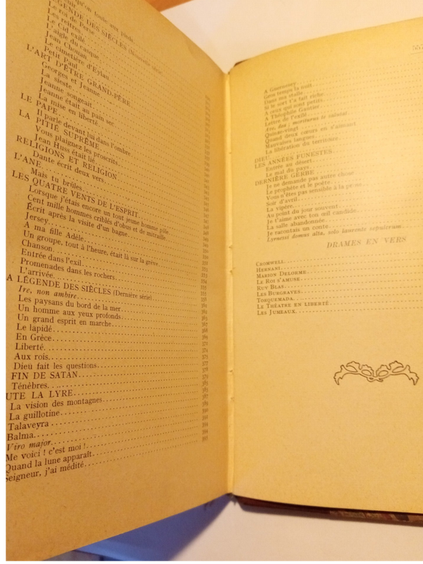 Poésies et drames en vers, table en photographie.